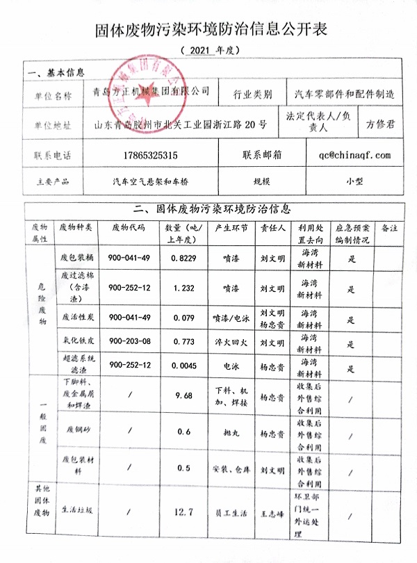 • 固體廢物污染環境防治信息公開表